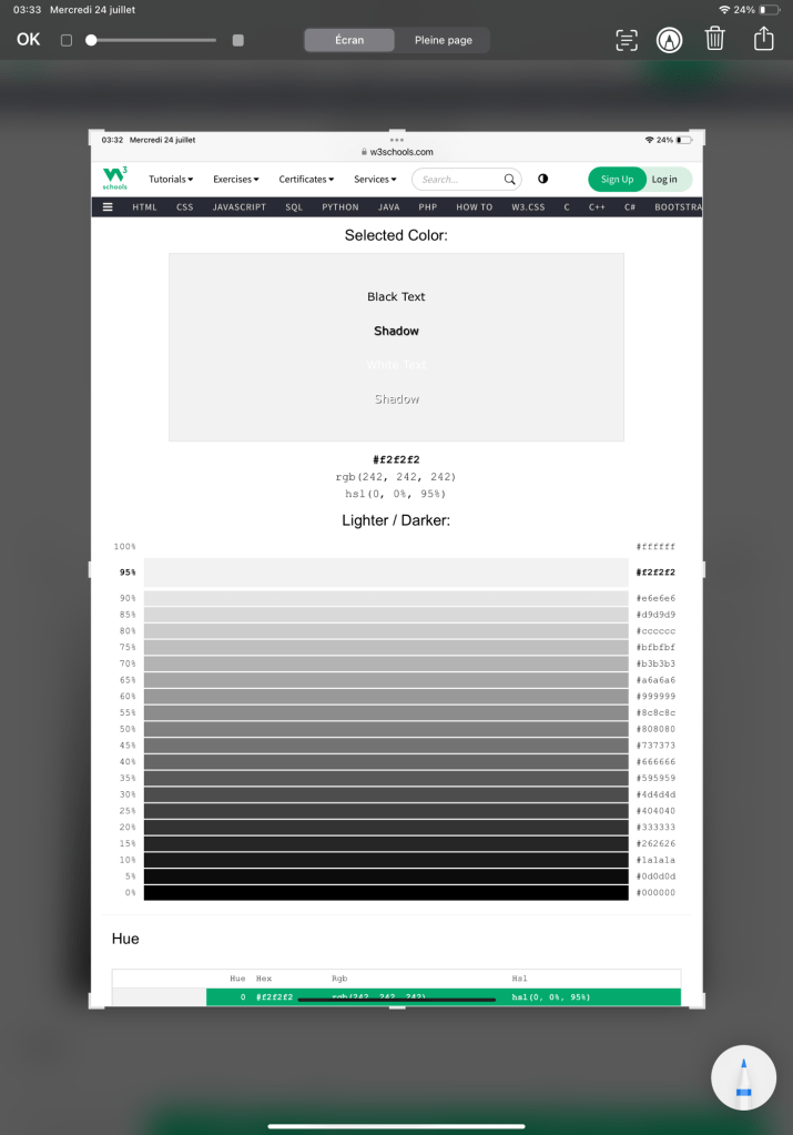 Choisir une teinte de couleur et identifier la forme chromatique déséquilibrée ou bloquée