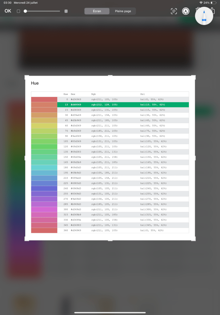 Choisir une teinte de couleur et identifier la forme chromatique déséquilibrée ou bloquée
