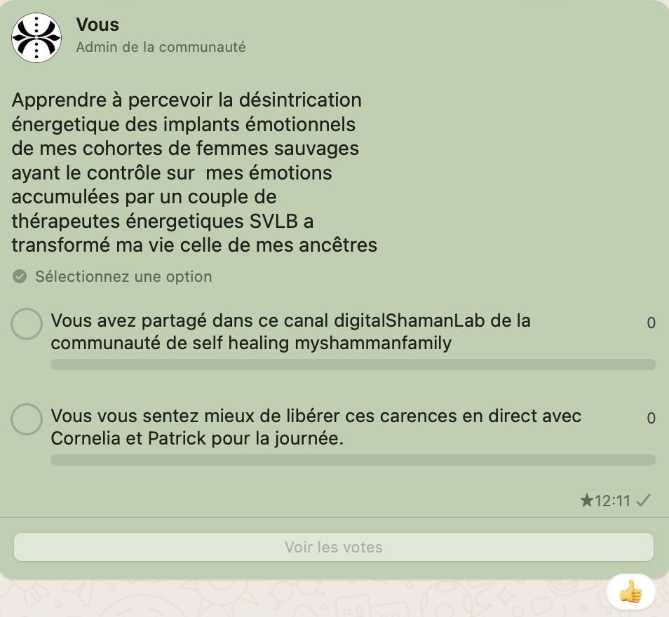 Libération d’une énergie de forme familiale bloquée par une thérapeute MyShamanFamily formée disposant de 100% de son Âme incarnée pour réaliser les soins.